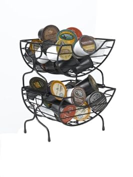 The Nifty Single Serve Coffee Baskets are a contemporary and stylish way to store and display all of your favorite single serve coffee products. The baskets have a unique stackable locking system to save precious counter and cupboard space. The Nifty Single Serve Coffee Baskets make it extremely easy to find and select your favorite coffee flavor. The classy black finish looks great on any kitchen countertop.