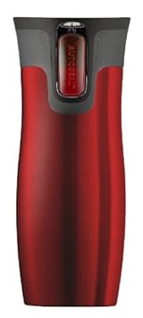 Designed to be 100-percent leak-proof, this vacuum-insulated 16-ounce Contigo travel tumbler lets you take beverages on-the-go without the risks of a messy spill. The patented AUTOSEAL lid is what makes the mug leak-proof and spill-proof, yet it also makes drinking easy. A contoured body and a soft rubbery grip at the top make this mug easy to hold. This sleek, elegant design also fits most car cup holders. This version comes in red, and it's available in an assortment of colors.